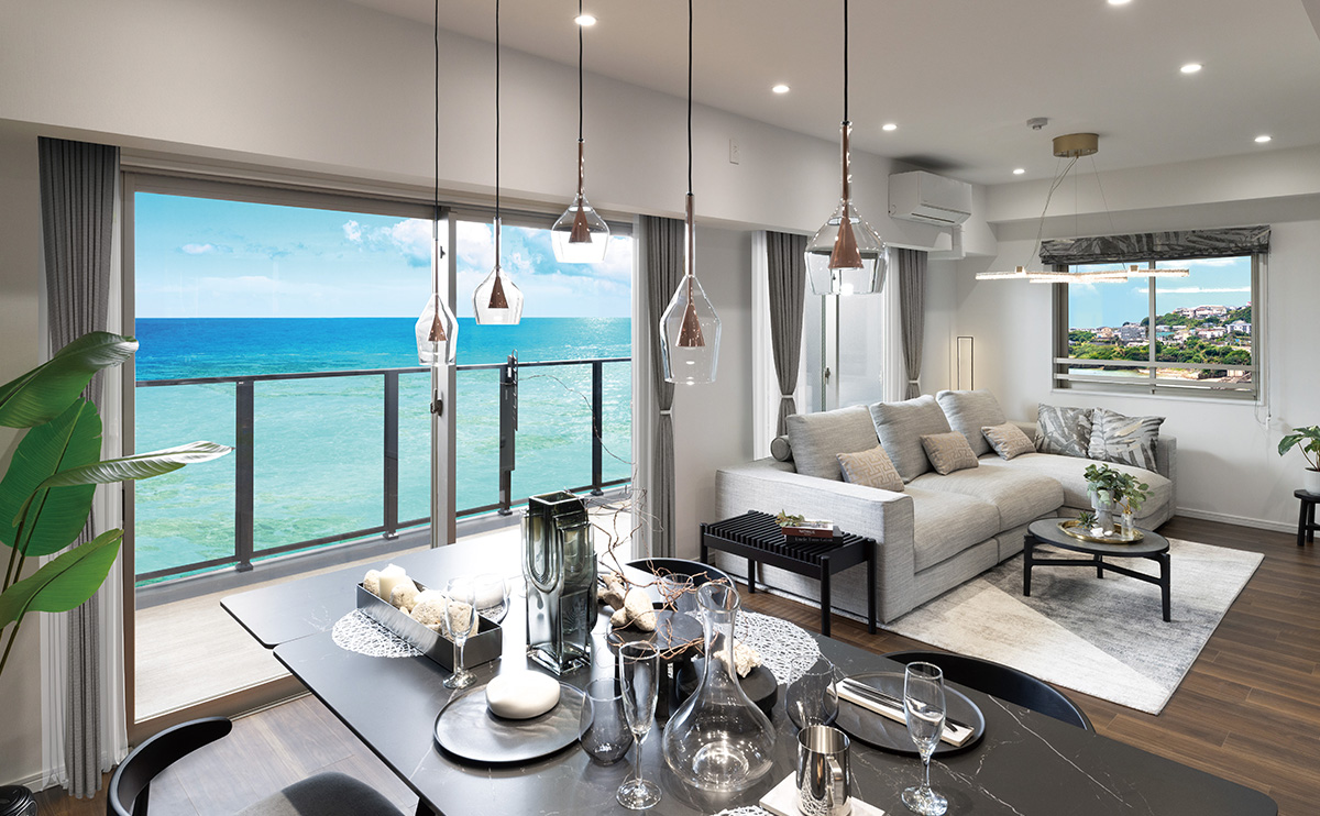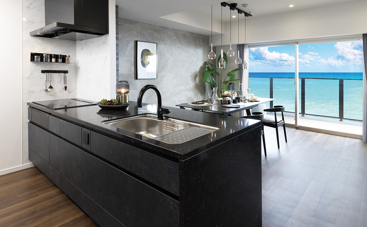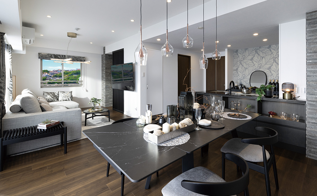 ※掲載の写真はモデルルームプラン(Aタイプ・令和7年9月撮影)と、現地周辺から撮影した9階相当の眺望写真(一部CG処理)を合成したもの、およびイメージ写真です。形状・色等は実際のものと異なります。